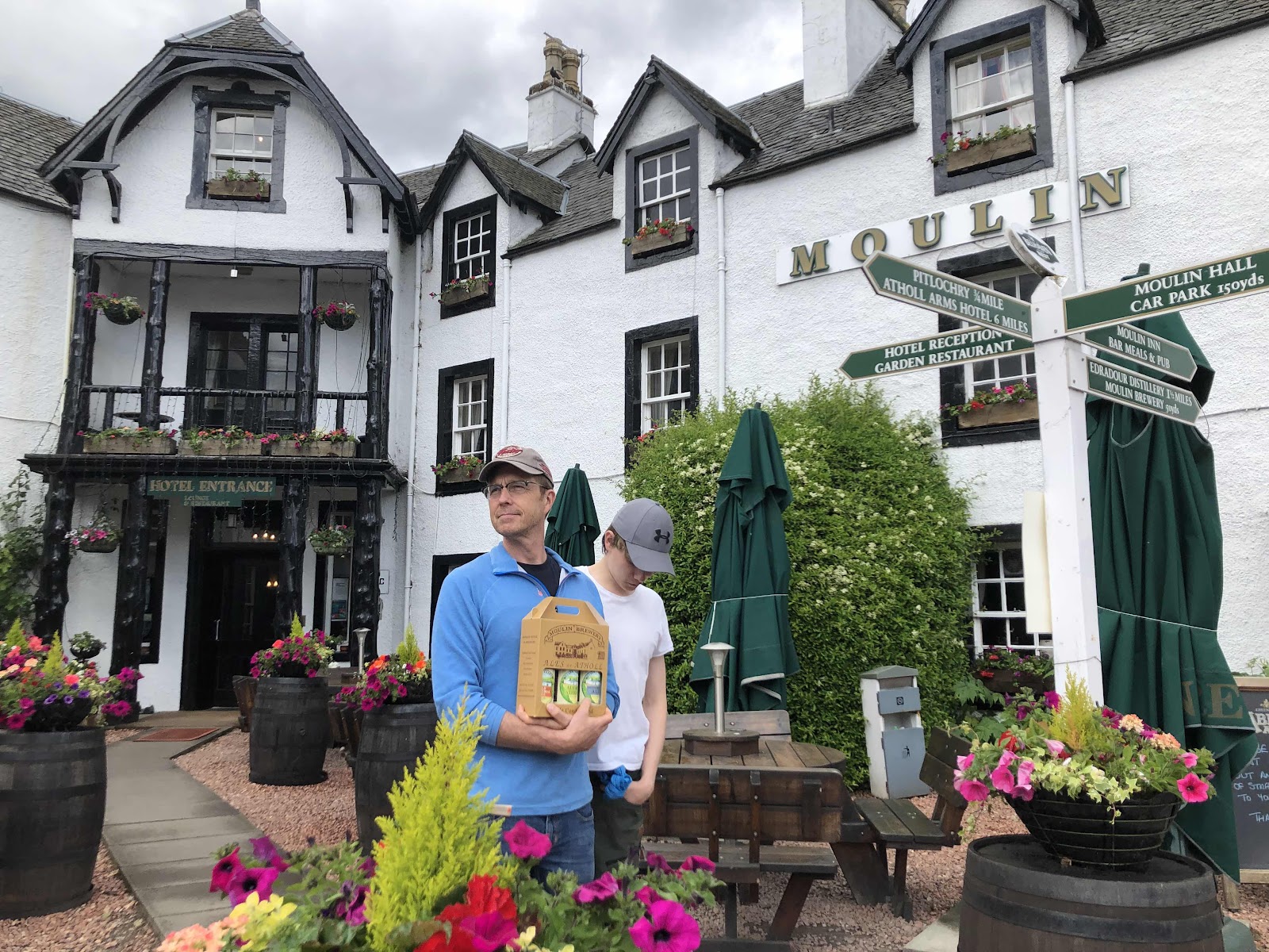En privat förevisning av ett litet litet bryggeri drivet av en ung entreprenör i anslutning till 1600-talspuben i Moulin