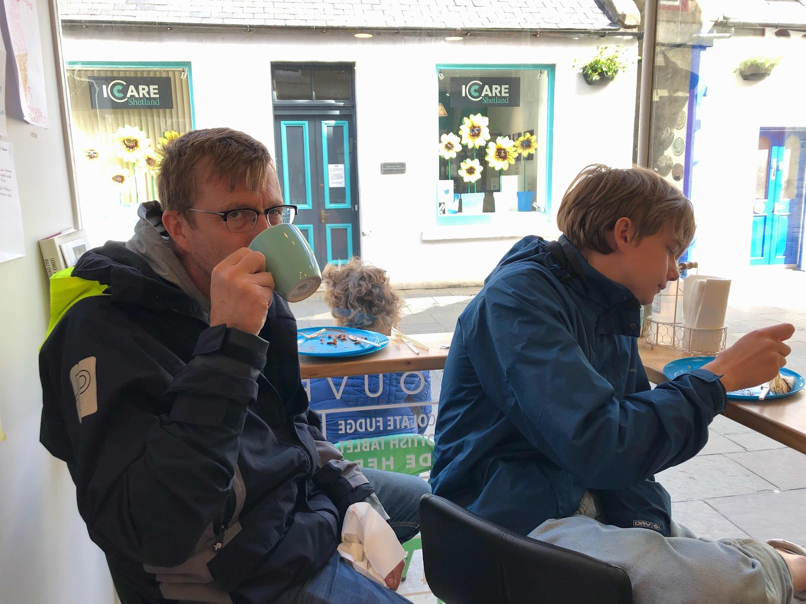 Så blir det äntligen av och vi sammanstrålar med Moffa och Marianne i Lerwick på ett crêperie och kaffefik