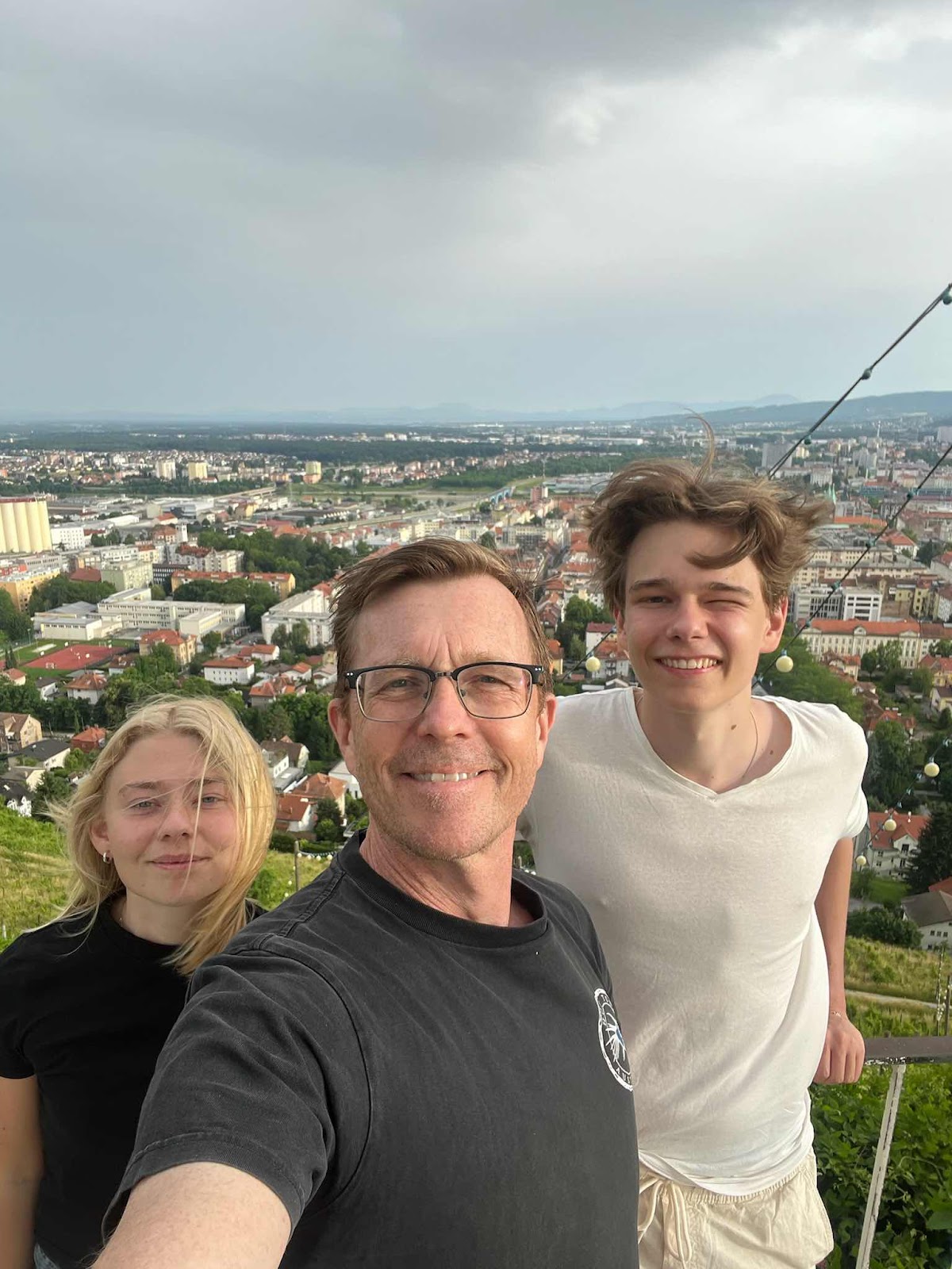 Efter en siesta i tältet gav vi oss iväg till Maribor där vi vandrade upp på Pyramid-berget för att få en go vy över staden. Vi såg tom en skidbacke i fjärran.
