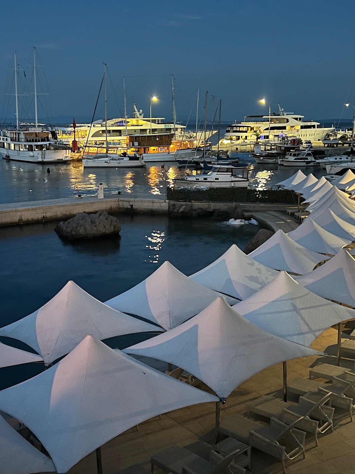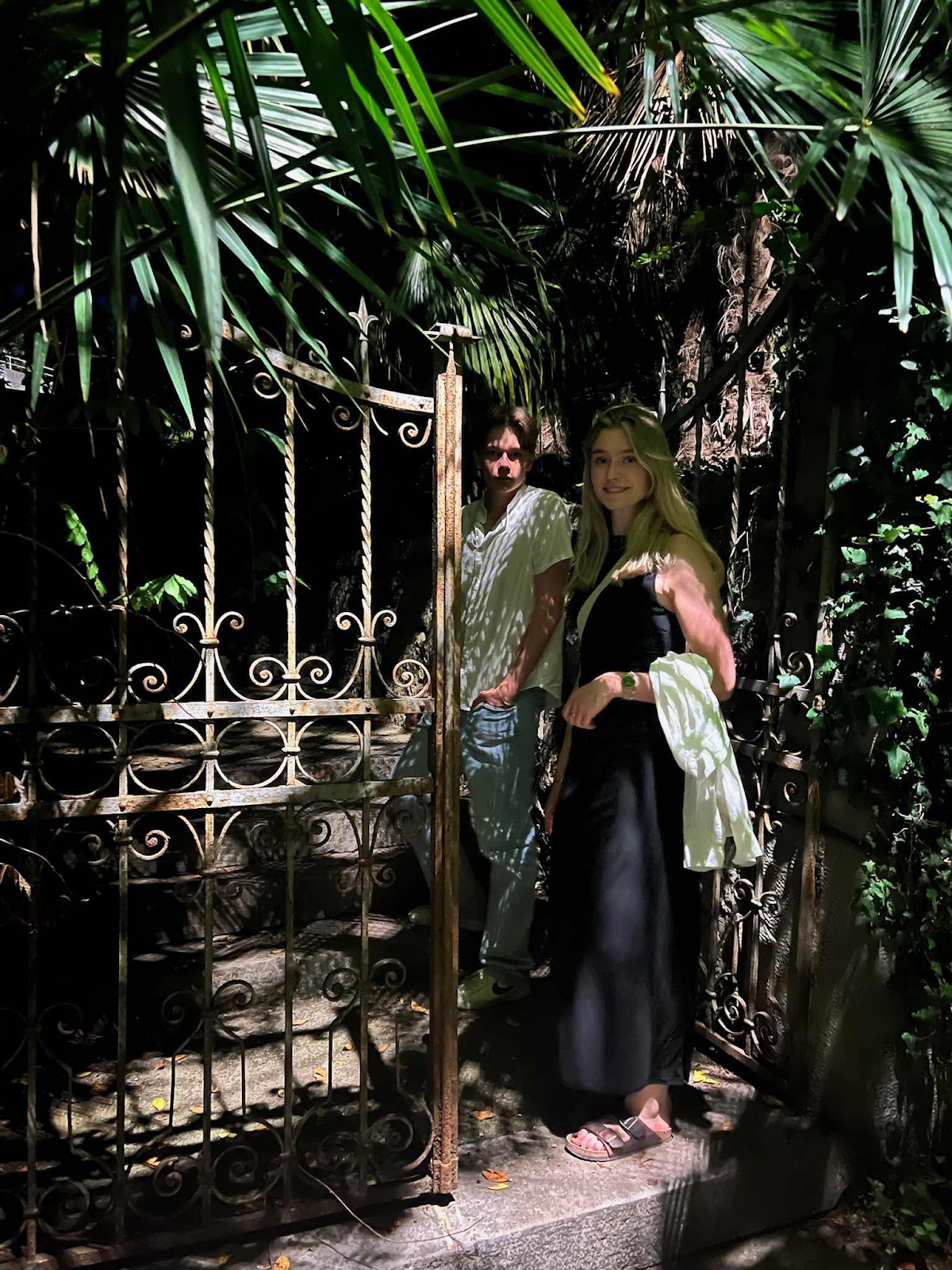 Sedan promenerade vi mätta omkring i sammetskvällen och insöp både blomdoft, musik och havsvyer