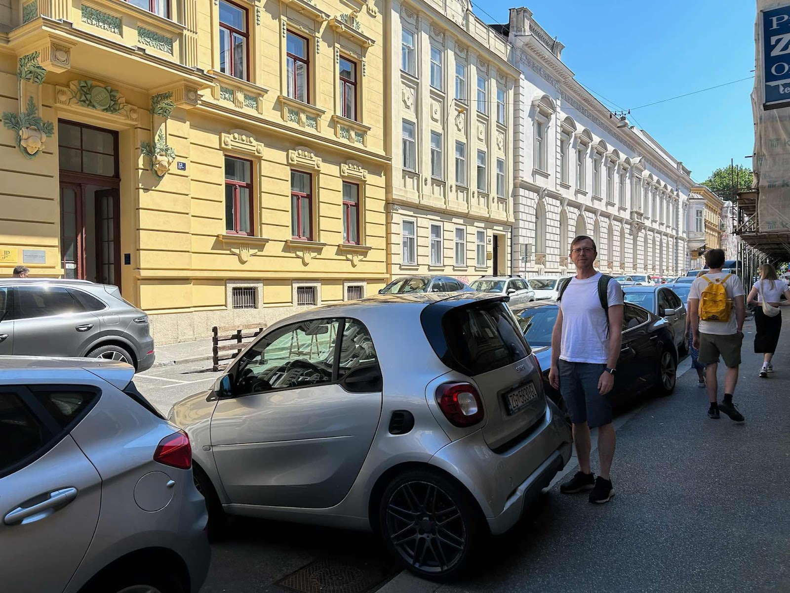 Så underlig parkering🤔 fördelen med att ha en liten bil 🤣 finns det någon anledning att Harald går åt andra hållet än ni 🤣