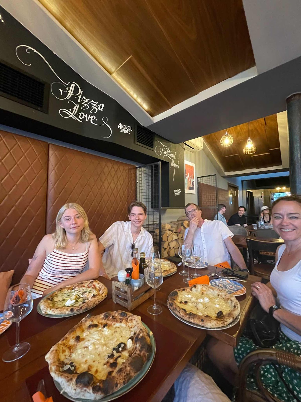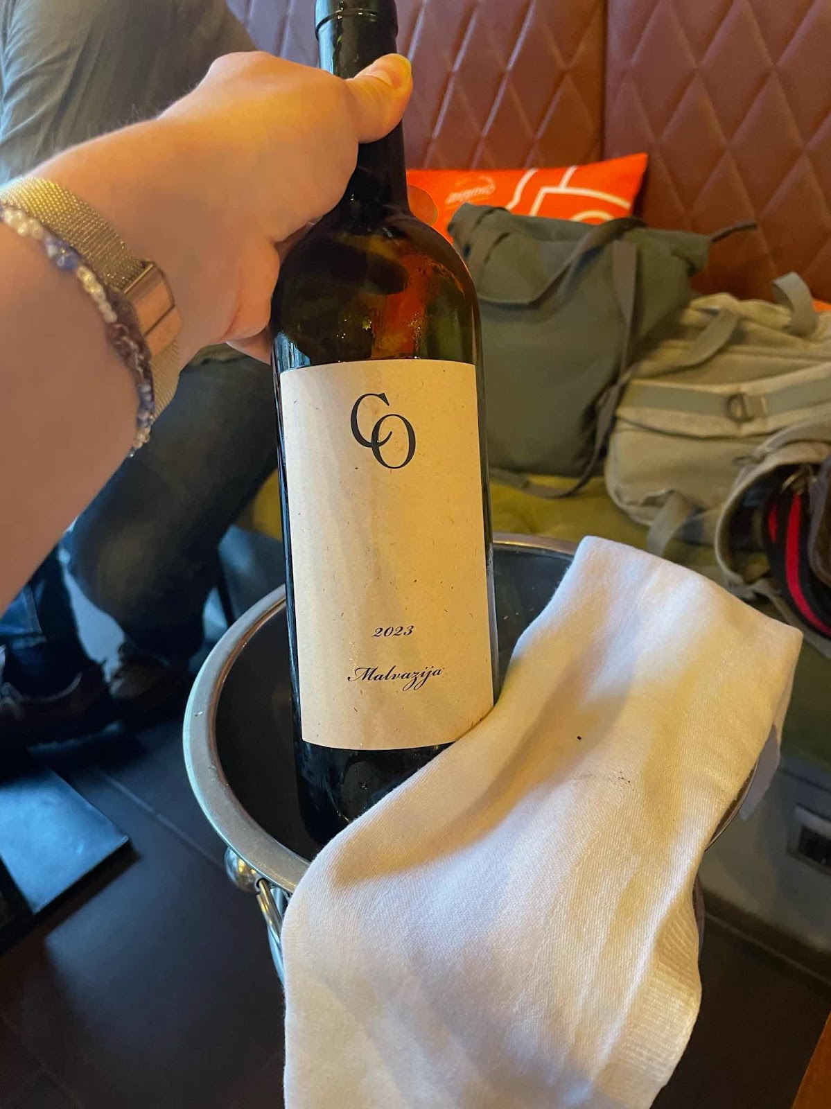 Sista kvällen innan avfärd mot Slovenien blev det vedugnseldad pizza och ett gott kroatiskt vitvin som tom Harald gillade: Coronica Malvazija