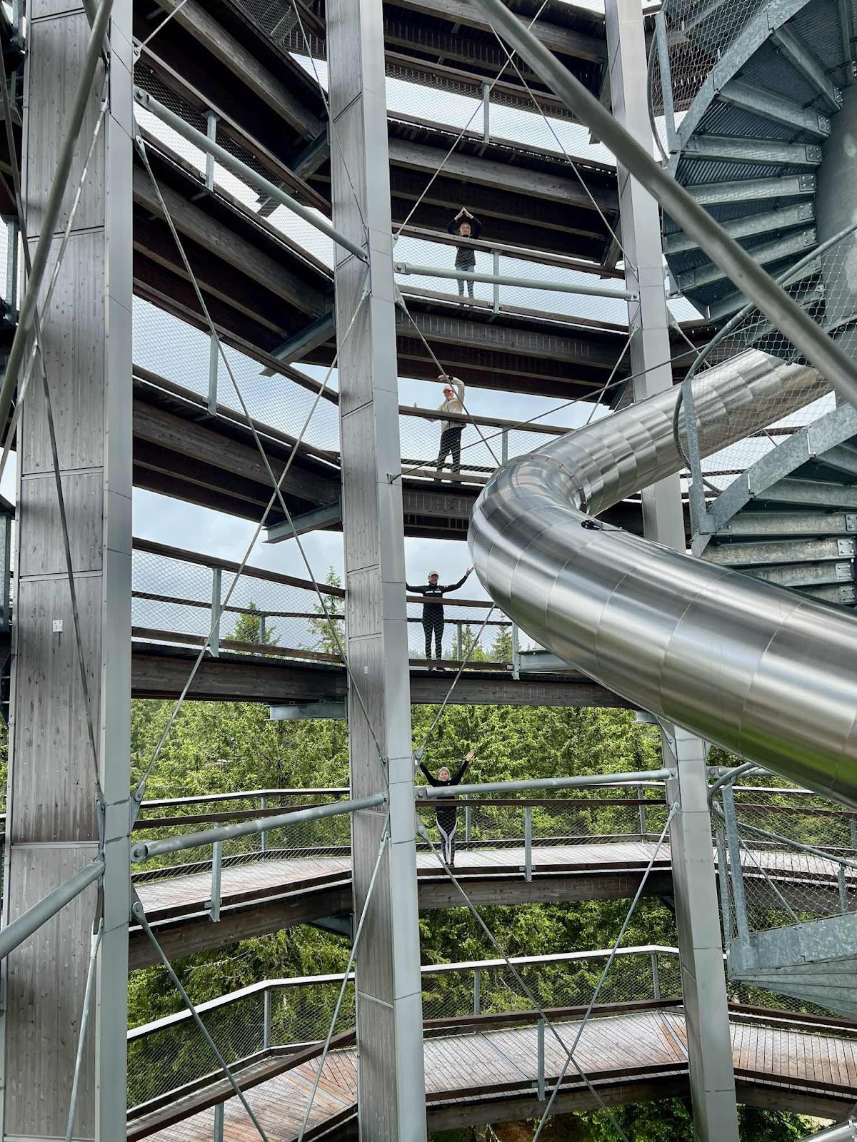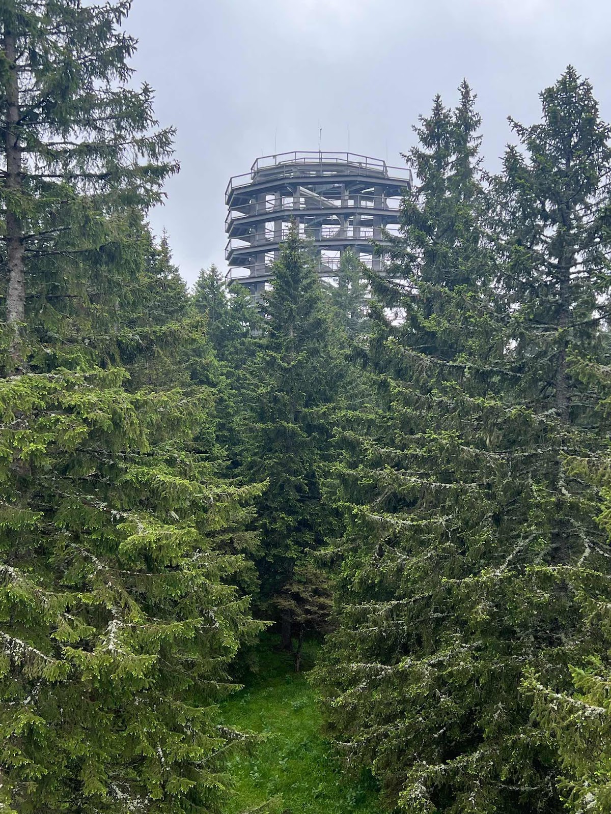 Nära ett skidcentrum finns det ett naturum-torn (liksom det vi besökt i Rugen i Tyskland) och vi beger oss upp och ovanför trädkronorna med en vidunderlig utsikt över bergen - Pohorje.