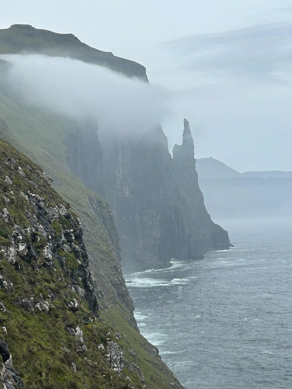 Innan kvällsmaten traskade vi upp till Trøllkonufingur (Häxfingret) som ligger på gångavstånd från vårt hus i Sandavagur. Mäktigt!