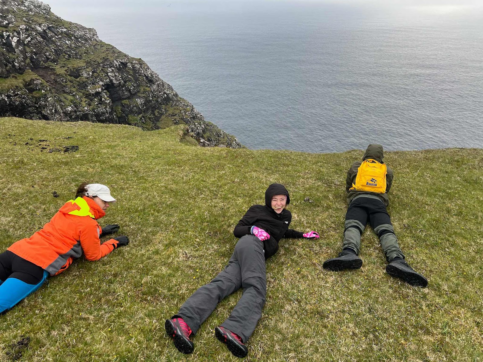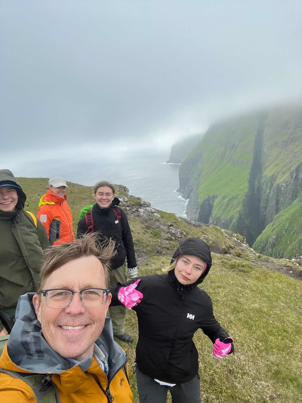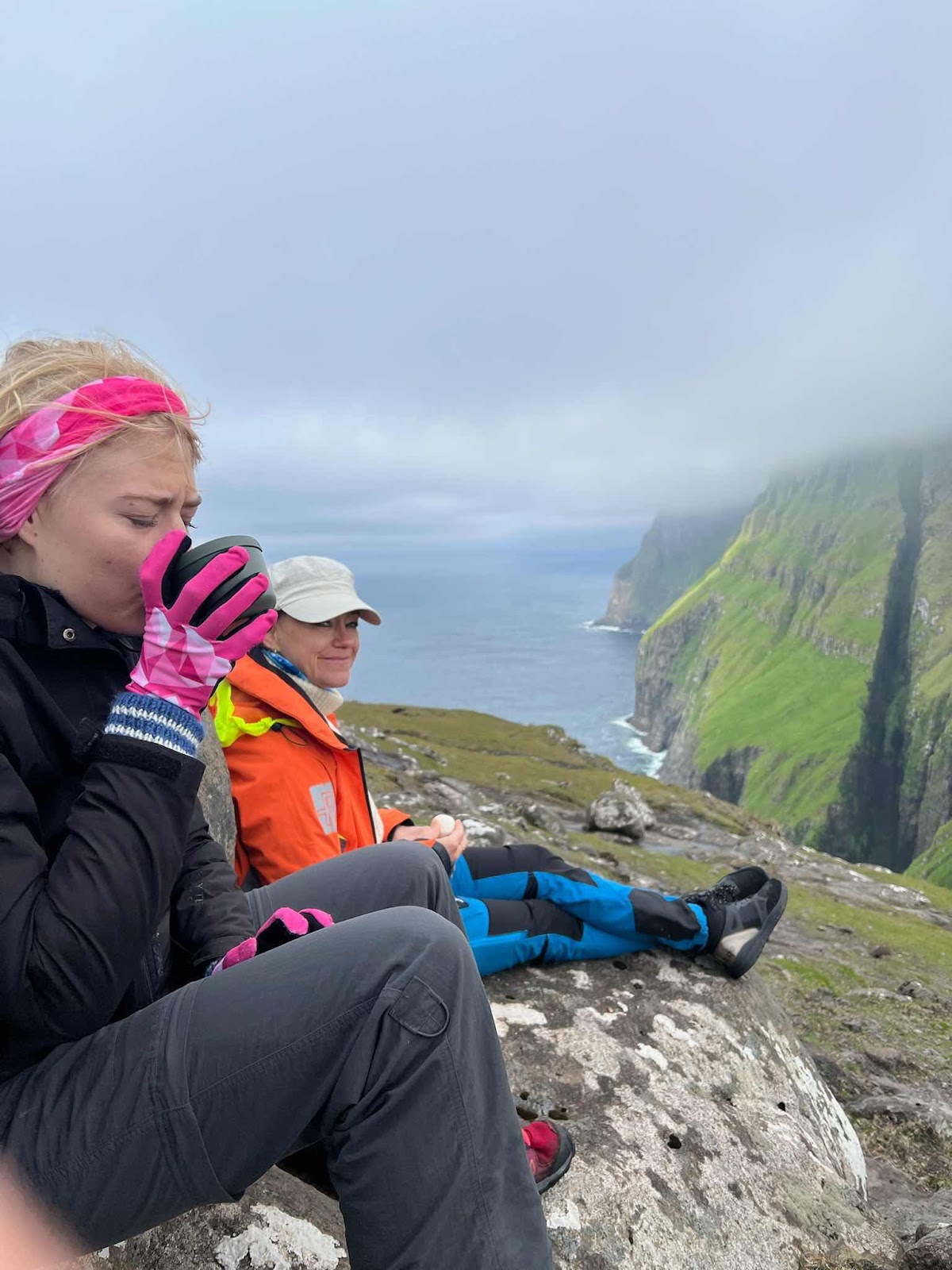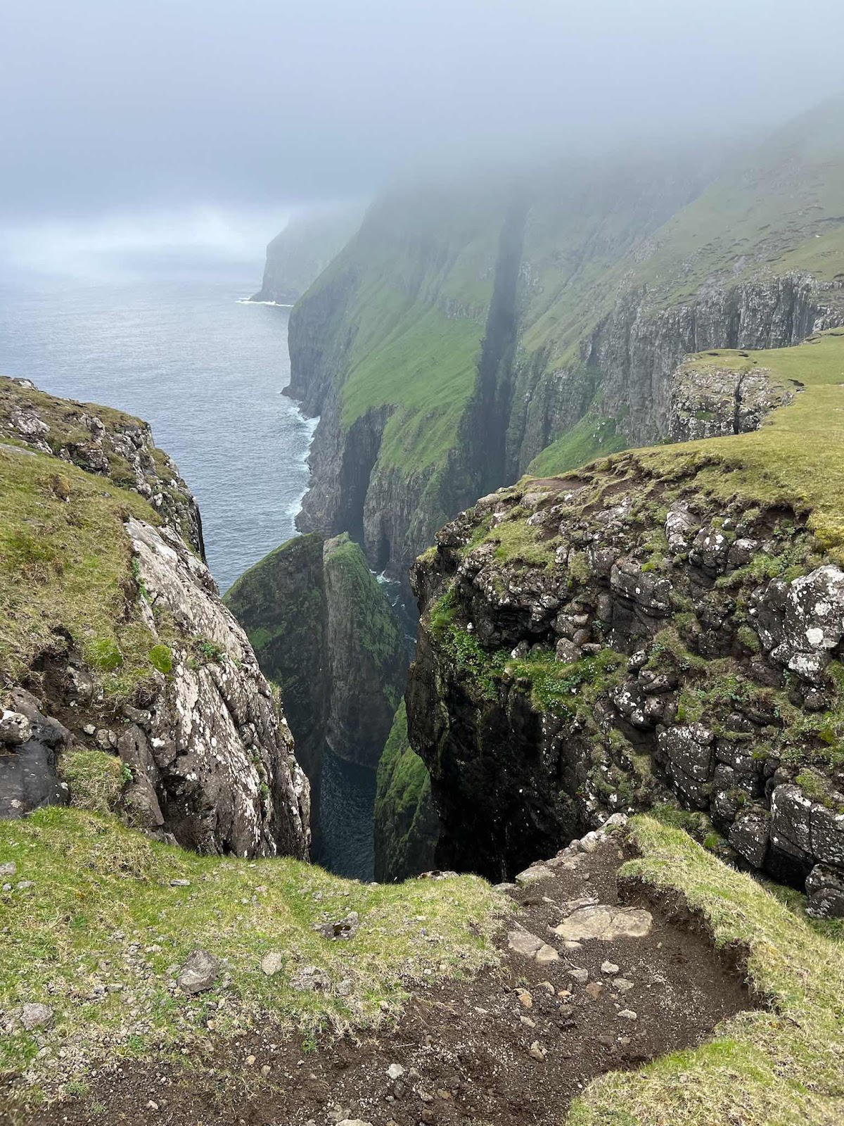 Mäktig vandring över hedar, via vattenfall till sydvästsidan på Vagar. Där finns det ett gäng ”sea stacks” med flera hundra meters stup. Fika med utsikt!