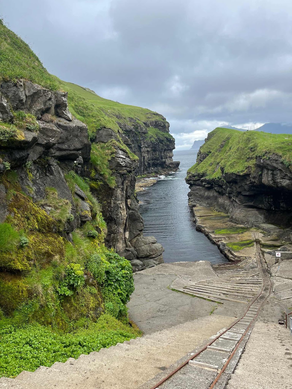 Via både vindlande och svindlande vägar kom vi fram till söta och mäktiga Gjógv, känd för sitt läge och coola ravin. Här tog vi in i spatiösa och torra (!) rum på Gjaargardur Guesthouse med makalös utsikt. Wow!